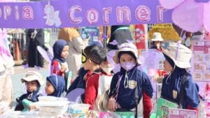 Dengan didampingi guru dan orang tua, para siswa belajar bagaimana cara memasarkan barang, bertransaksi, menghitung uang kembalian, serta melayani pembeli dengan ramah. Kegiatan berlangsung meriah dan penuh tawa, apalagi ketika anak-anak dengan polosnya mencoba mempromosikan dagangan mereka dengan berbagai gaya lucu dan menggemaskan.